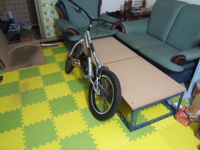適合自己練習進度高度的平台是很重要的輔助道具, 如果能有現成的當然是最方便, 沒有的話就要自己設法, 以前我練車主要就是大稻埕碼頭的幾個點, 後來我最愛的一個平台拆掉了就覺得很傷, 這半年來因為碼頭工程大半個廣場封閉, 於是我就去看了工程進度公告板, 上面說三月中完工, 可是這幾天我去看了一下覺得不像要完工的樣子, 於是又去看告示板, 上面的三月已經塗改成五月了, 昏倒.