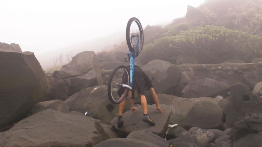 在這種地方摔車很可怕, 以這次摔車來說, 四平八穩落在大石頭上算是跌得很安全了, 不過這張照片充滿了SM 暗示.....
