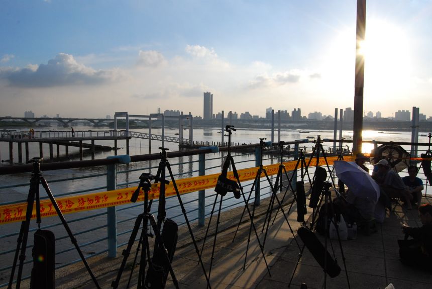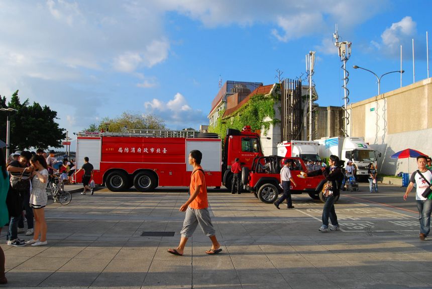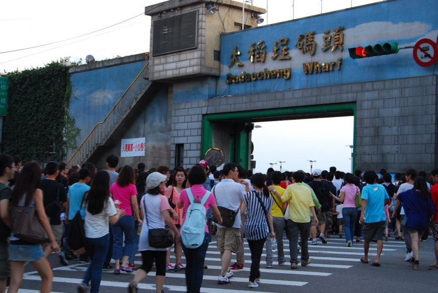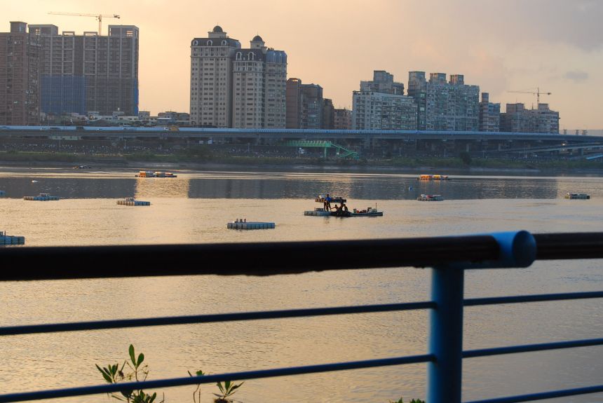 今天晚上八點半大稻埕碼頭要施放煙火, 這回的煙火施放的位置不太一樣, 有新型的水上爆破, 黃昏時我過去看看現場照了一點照片, 想看煙火的話還來得及喔!