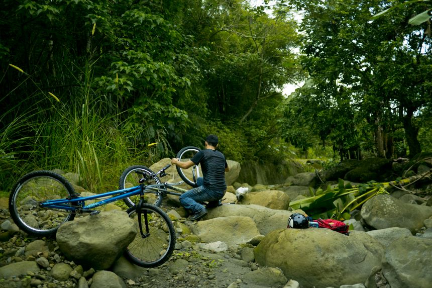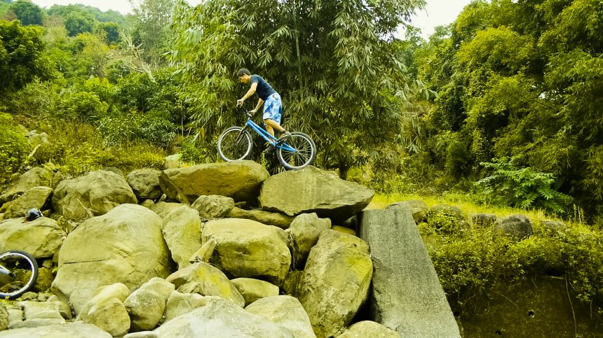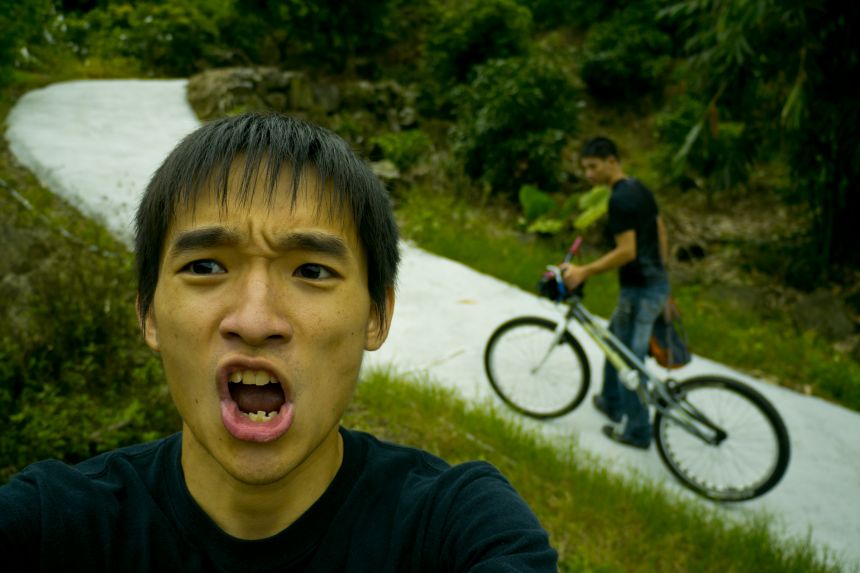 我基於很想快去騎車,又不想鑽草叢,所以我就說:「不要,就不要理它啦~」