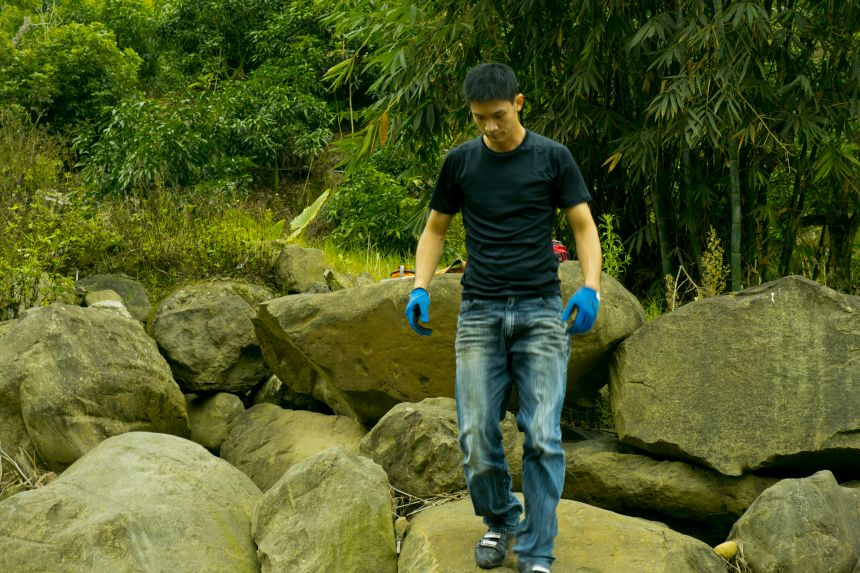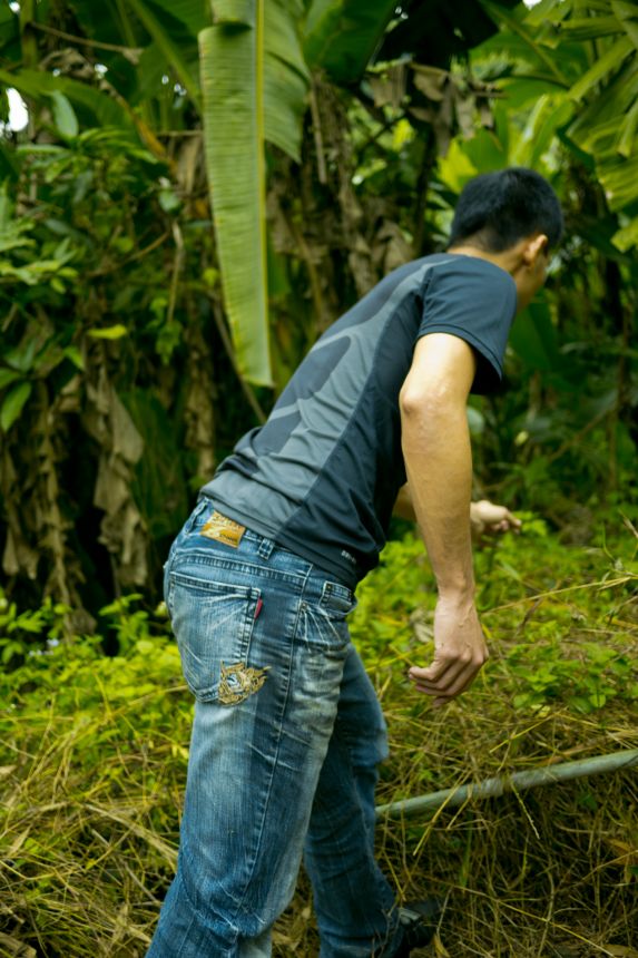 大偉正在整理他家的香蕉樹,整理整理的就說道。