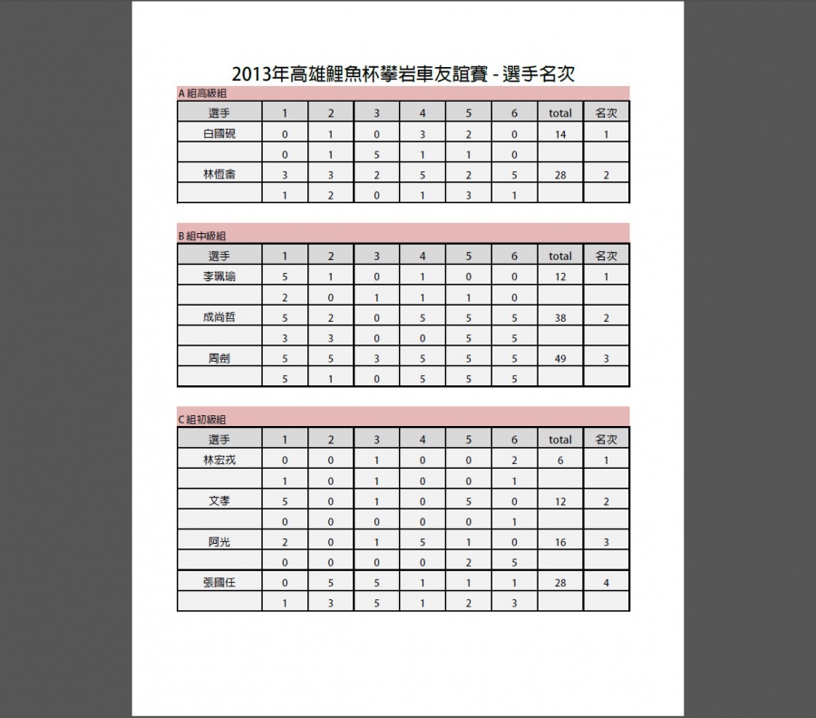 RE: 高雄攀岩車邀請賽比賽結果 btt