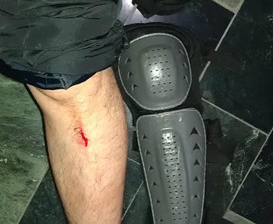 以為穿了護膝就不會被打到,而且我是穿下坡車的