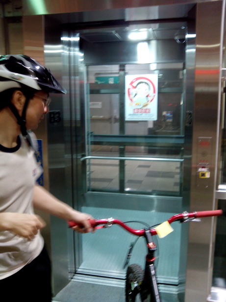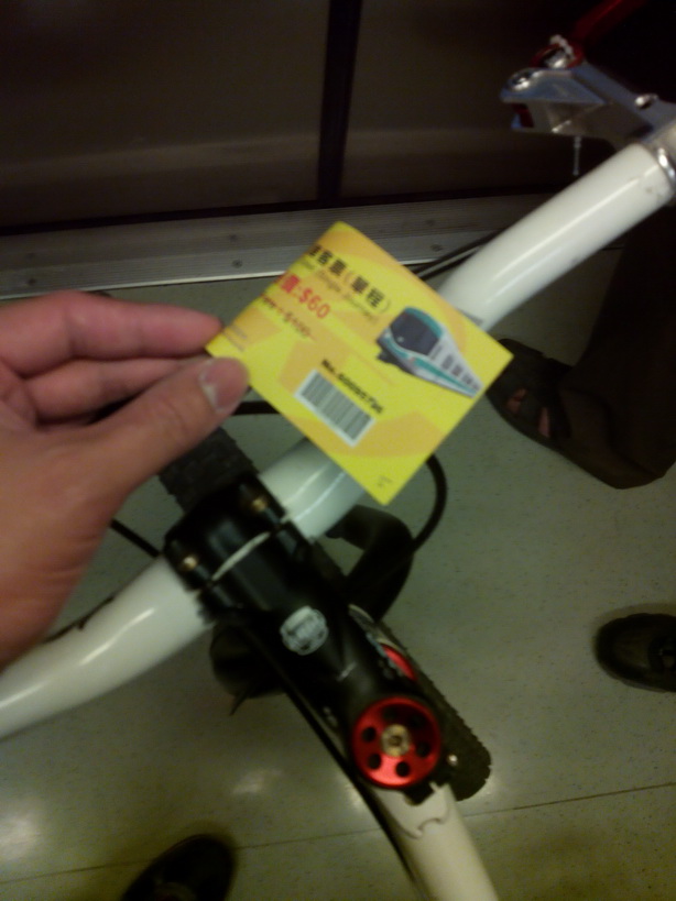2. 買完票服務員會從服務台出來帶領你從一個閘門進站,並在進去時給你的車握把上訂上一張票表示你有買腳踏車票