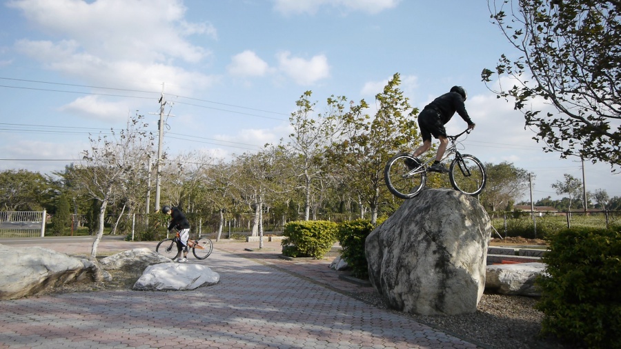 在入口處就有一堆石頭的造景,難度適合中新手,而在其它地方還有一些矮桌椅和矮牆