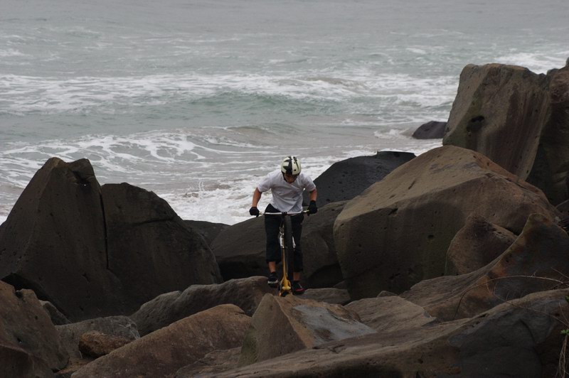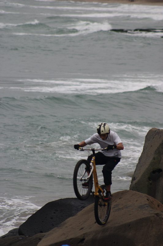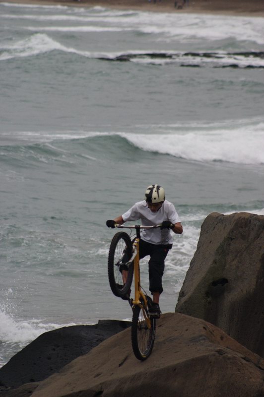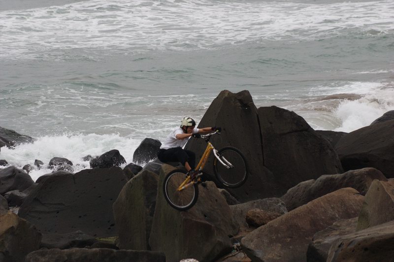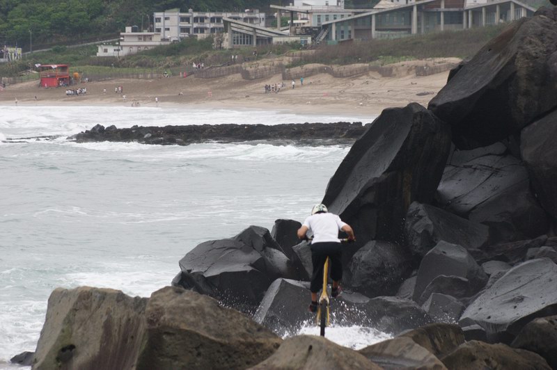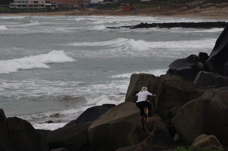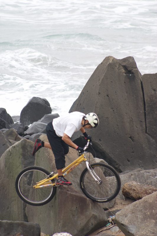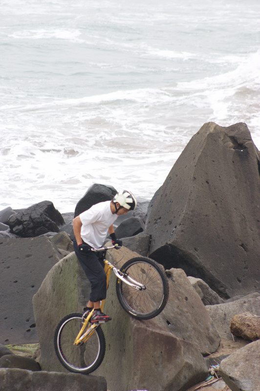我發現, 這斜面超斜!! 而且我前輪好死不死還吃在它上面有凸起處, 挖!! 真的完蛋了!