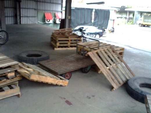 隔天老闆就會看著那些棧板...在念...是哪個死小孩..把我家的棧板擺成這樣的阿....XD