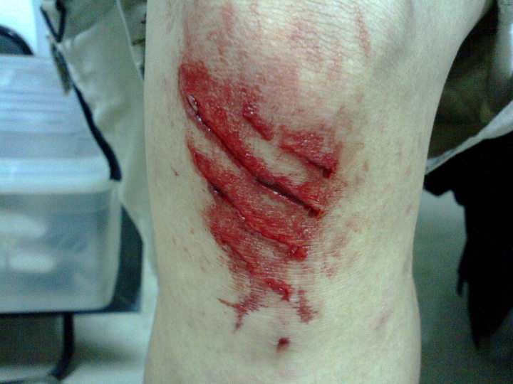 而右腳只多了一個, 皮肉到表皮不能再表皮的皮肉傷... 完全沒有被敲到的感覺...