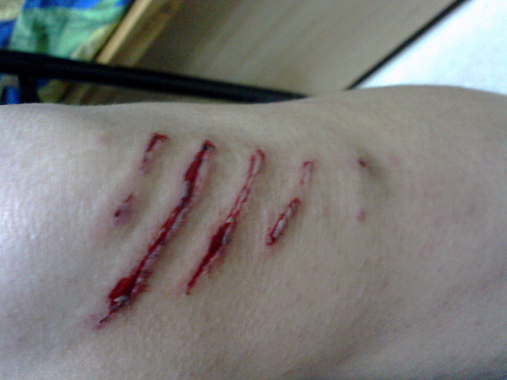 除了老K牌護腿以外我還戴了軟式有護墊的護膝, 若是沒有的話膝蓋經過世界貓的爪子劃過恐怕就跟小魚一樣吃牛排了.