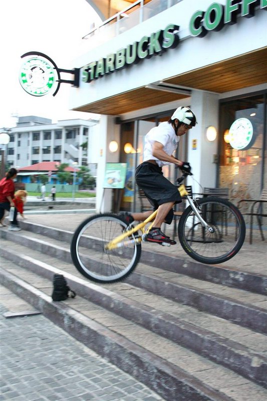 某天在淡水老街練車, 遇到Malaysia來的好心旅客, 幫我拍了幾張照片, 後來還特地的寄給我.