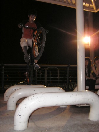 好羨慕小江喔,今天有兩位正妹坐在欄杆旁一直幫小江拍照;知道為什麼要把技術練好了吧,呵呵!
