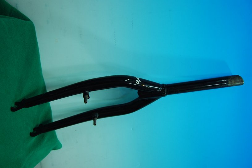 九成新的Monty V夾鋼製前叉, 可使用V夾煞車或碟煞, 黑色上管內含梅花, 重量1300克, 售價900元.