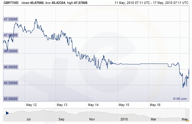 經過ELI第一手消息,目前英鎊匯率約46塊上下,不知道還會不會再跌下去。