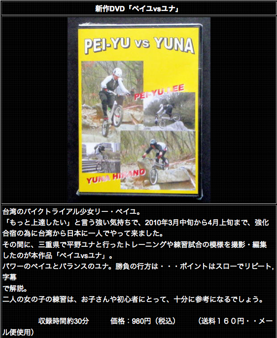 ""想要求得技術進步""意志堅定來自台灣攀岩車少女-李佩瑜獨自一人3月底4月初來到日本,期間與居住三重縣的平野優娜一同生活起居、一同練習...有強力爆發的佩瑜和平衡見長的優娜PK的結果!!!孰勝孰優???請見分曉...在關鍵的動作都有慢動作重播並且有字幕解說(可惜是日文~><~殘念!!)
